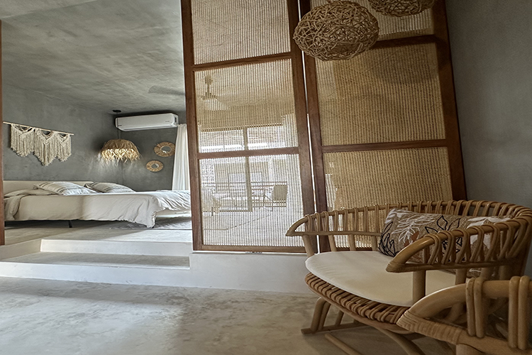 Il dispose d’une chambre à coucher, d’une salle de bain, d’une cuisine équipée, d’un balcon avec sa propre plunge pool , de l’air conditionné, accès à internet/wifi et est entièrement meublé et décoré façon « Tuluminati », ce qui en fait le lieu parfait pour ceux qui recherchent un style authentique de la région dans un environnement naturel.